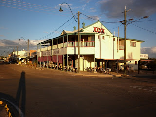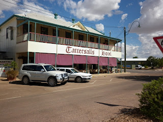 We will start this posting off with Winton. This is our third visit to Winton, so we stayed at a new CP that belongs to the Tattersalls Hotel. Last time we were there, we noticed this small park coming together opposite the Tattersalls Hotel. As we know the owner of the hotel, previously the bar manager from the Eimeo hotel in Mackay in the eighties...Paul Nielson...., who now owns the Tattersalls Pub, and has developed the CP. Every time we go through Winton, we say gidday and have a drink. I am sure one of our followers FrankeeG would know him as well, from both our time in Mackay NQ.